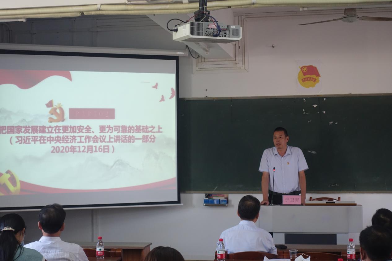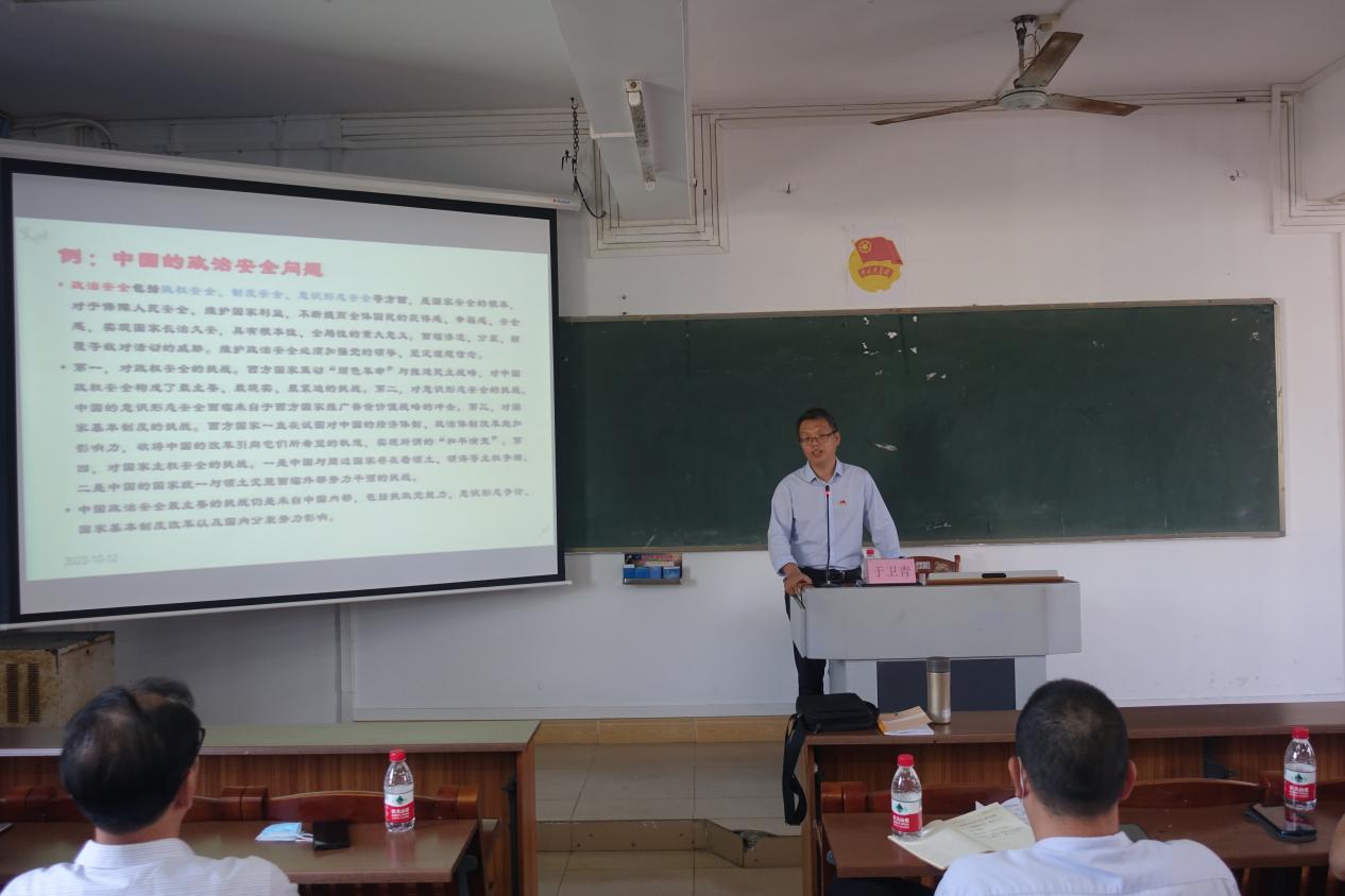 于卫青以“《习近平谈治国理政》第四卷第十六专题学习:统筹发展和安全”为题,围绕“贯彻总体国家安全观,构建大安全格局”内容作宣讲报告。他从“国家”溯源、国家安全的定义、国家安全工作、总体国家安全观的内涵等几大方面进行介绍,对贯彻总体国家安全观提出的10点要求进行了深入解读。
