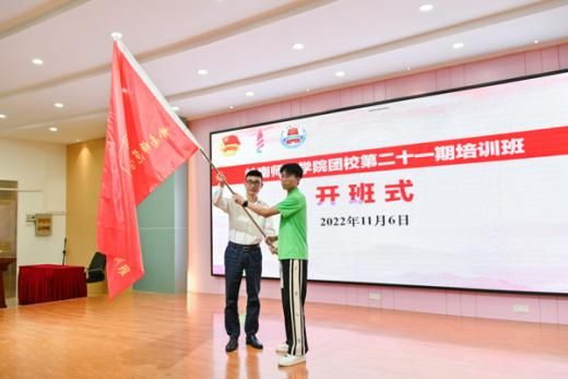 开班式上,全体学员齐唱团歌,重温入团誓词,收看团中央新一期“青年大学习”网上主题团课视频。商学院2022级叶彤同学作为学员代表发言,表示要勤学善思做先进思想的引领者、奋勇争先做团学工作的推动者、砺能笃行做同学成长的同行者。电子与电气工程学院2022级陈邦同学代表全体学员获授班旗。
