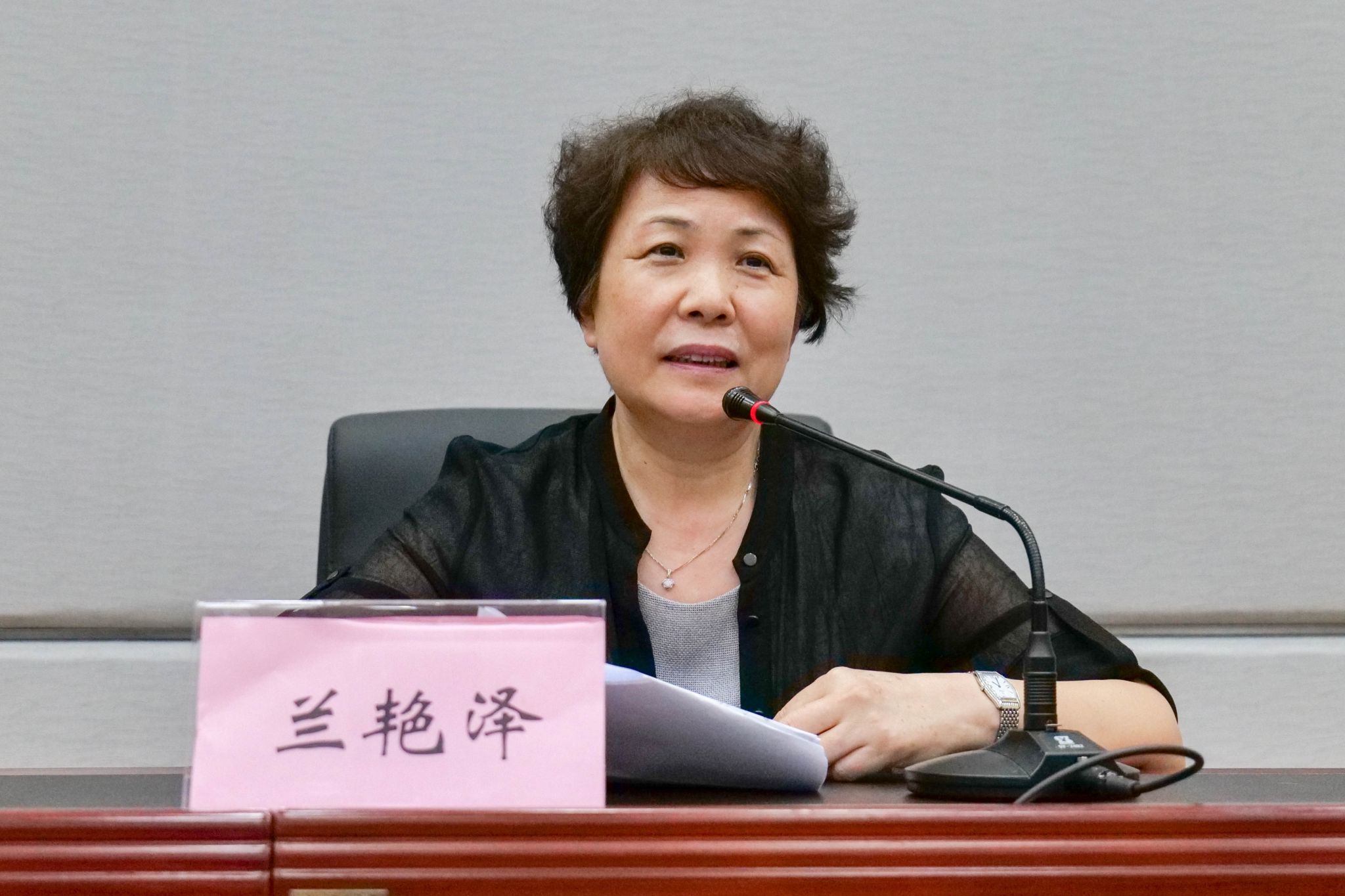 党委书记兰艳泽主持会议(吴凯欣摄)