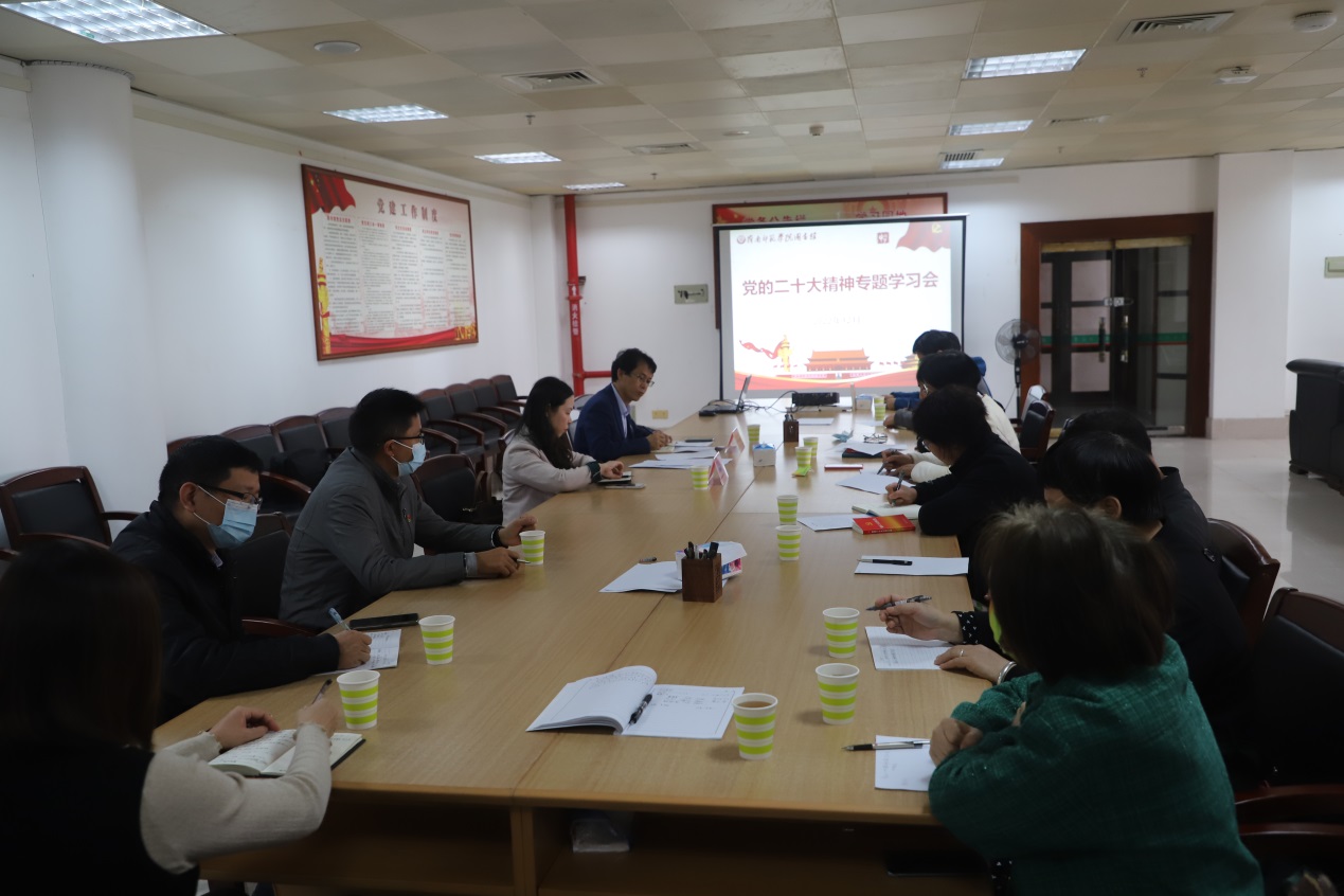 会上,李健彬作《学习贯彻党的二十大精神,擦亮“书香党建”新品牌》的主题发言,就党的二十大报告中“推进文化自信自强,铸就社会主义文化新辉煌”方面做了阐述,并结合图书馆党总支具体实践工作谈了体会。李健彬提到,图书馆作为一个教辅单位,把“书香党建”作为自己的特色和品牌,把“传播文化”、“以文化人”和“服务育人”作为主要的工作内容,正契合了党的二十大报告所提出的“育新人、兴文化、传承中华优秀传统文化”的要求。他表示,图书馆党总支将继续认真贯彻落实《岭南师范学院党委理论学习中心组学习规则》,进一步推进理论学习中心组学习制度化规范化,推动理论学习成果转化为实际工作成绩,提升党员群众服务育人的水平和能力,为学校的高质量发展提供应有的贡献。