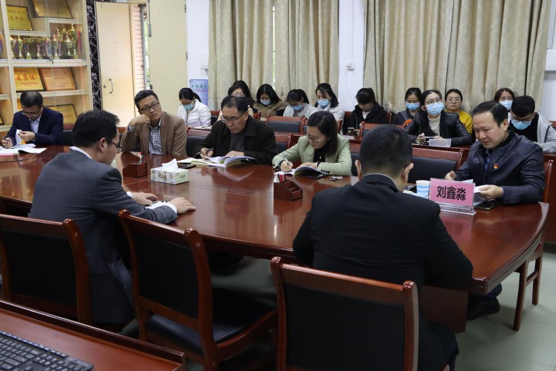 为深入学习宣传贯彻党的二十大精神,把学院全体教职工的思想和行动统一到党的二十大精神上来,坚定不移推动党的二十大各项决策部署落地落实。12月7日下午,数计学院在榕燕楼会议室召开了教职工政治理论学习会,邀请学校党委理论宣讲团成员、法政学院院长刘鑫淼教授做主题宣讲,会议由学院党委书记李伟主持,学院全体教职工参加本次学习会议。