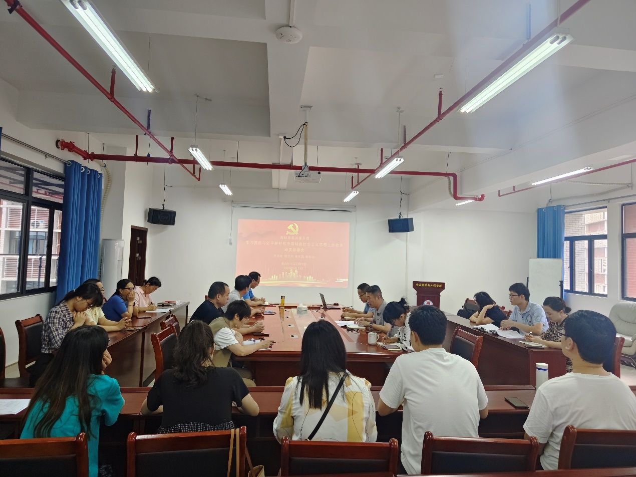 为传达落实学校学习贯彻习近平新时代中国特色社会主义思想主题教育动员部署会议的精神和要求,4月23日上午,食品学院党委组织于第五教学楼B栋318室召开学习贯彻习近平新时代中国特色社会主义思想主题教育动员部署会,学院党委书记邱飞、副院长(主持行政全面工作)王标诗、副书记刘淑芬、副院长胡小军、正处级辅导员郑侯锦、教工第一党支部书记张世奇、教工第二党支部书记黄亚芬、学生党支部书记袁嘉瑜以及全体教工党员参会,邱飞主持部署会。