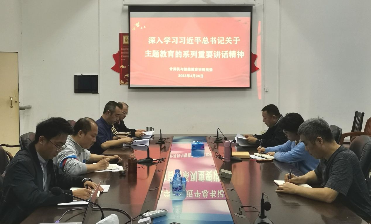 4月28日,计算机与智能教育学院党委理论学习中心组在综B101会议室举行学习贯彻习近平新时代中国特色社会主义思想主题教育专题学习会,计算机与智能教育学院领导班子成员、办公室主任、专职组织员出席本次会议。学院党委书记李海文主持会议。