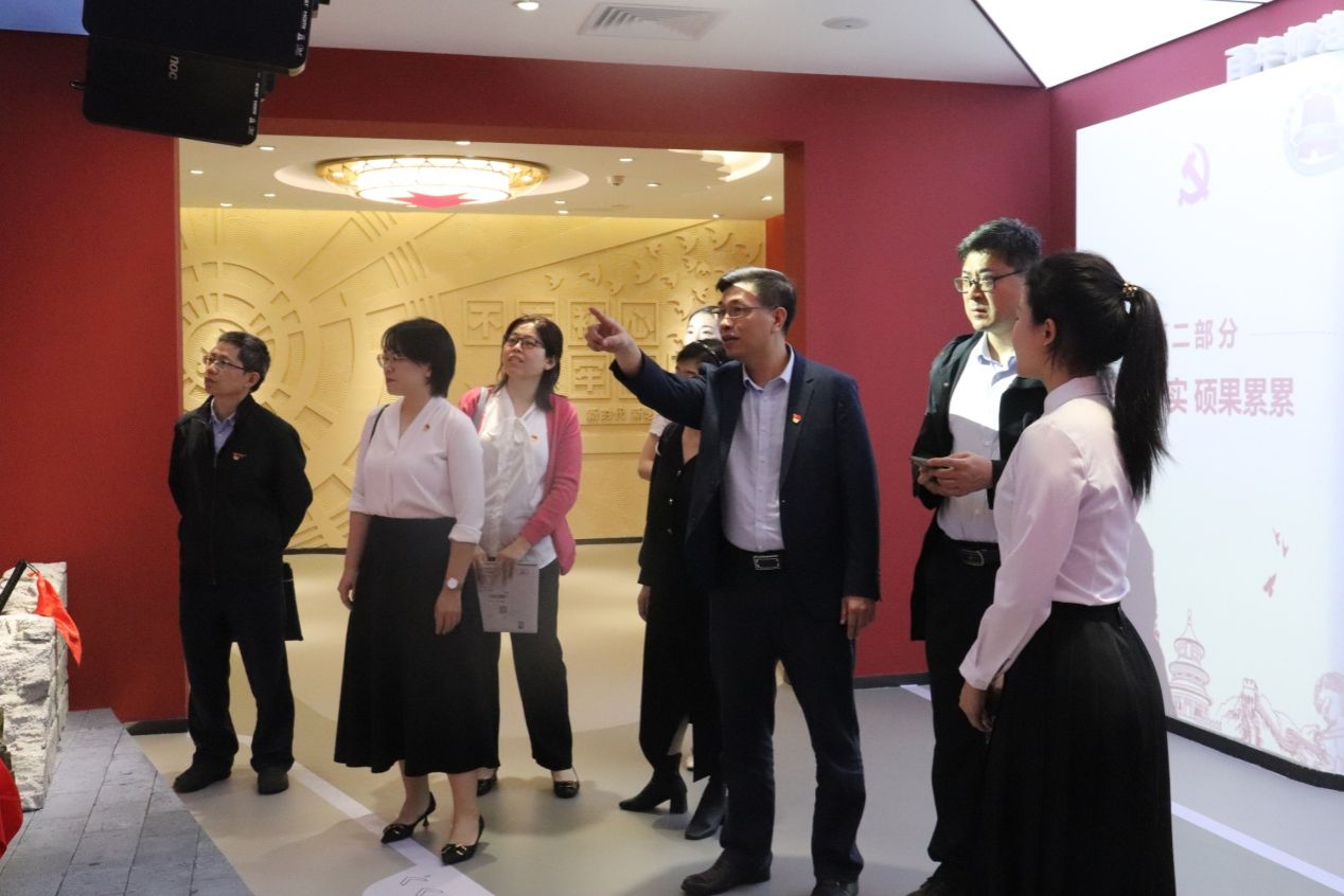 首先,大家参观了学校党建文化学习教育空间的序厅、学习区、成果区、阅读区和尾厅五个区域,体验了“党建先锋”数字瀑布、VR党建一体机、“党建学习打卡区”等富有信息化和科技感的载体。党建平台生动地展示了中国共产党成立至今的百年光辉历程,学校党史学习教育,百年校史、红色校史人物。
