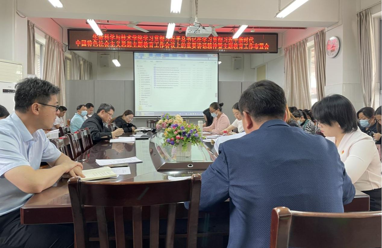 4月26日下午,生科院于燕雷楼D-505室召开学习贯彻习近平总书记在学习贯彻习近平新时代中国特色社会主义思想主题教育工作会议上的重要讲话精神暨主题教育工作布置会。生科院党委书记李发武主持会议。党委副书记覃静君、副院长孙余丹、副院长王锂韫、生科院全体教职工参加会议。
