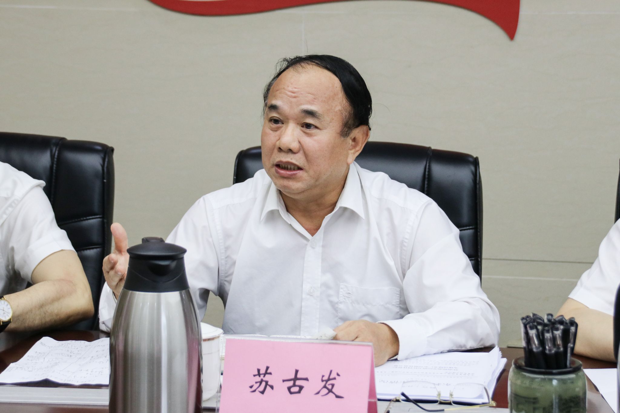 副校长苏古发以《立足校本特色紧抓贯彻落实推动岭师高质量发展》为题,结合所分管的大基建、大后勤和校地合作等工作谈贯彻落实意见建议。一是深入贯彻落实习近平总书记视察广东重要讲话重要指示精神,找准发力点,深化校地合作,打造岭师新特色新亮点。二是以习近平新时代中国特色社会主义思想为指导,全力推进新校区建设,积极探索多校区管理模式,加快做大做强岭师。他表示,全面贯彻落实习近平总书记视察广东重要讲话重要指示精神,就是要立足学校办学条件、学科专业和办学优势等校本特色,进一步用习近平新时代中国特色社会主义思想来武装头脑、指导实践、推动工作,推动学校高质量发展。
