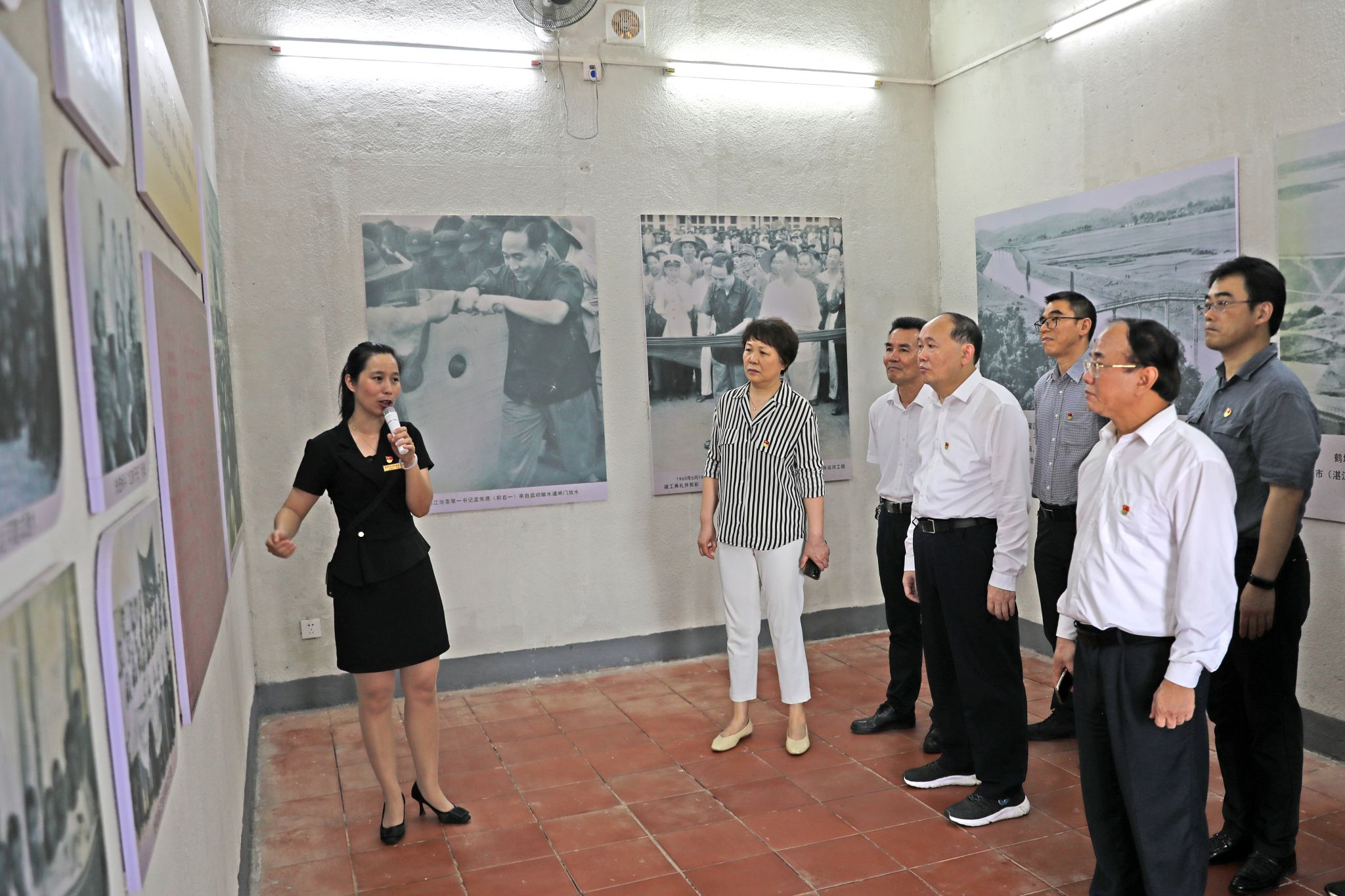 当日上午,校领导、学员们在鹤地水库建库开河纪念馆工作人员的引导下,实地考察了纪念馆各展厅,观看了建库开河的相关视频。通过展厅中一幅幅画卷、一个个场景、一件件简陋的自制劳动工具,以及一幕幕夜以继日奋战在建库开河工地的震撼人心的历史视频资料等,深刻感悟雷州青年运河建造期间广大干部群众齐心协力,自带材料、自创工具、自带粮食,合力弥补资金缺乏等困难,以实际行动支持运河建造的感人事迹。先辈们不畏艰辛、百折不挠的革命精神令在场师生感悟颇深。