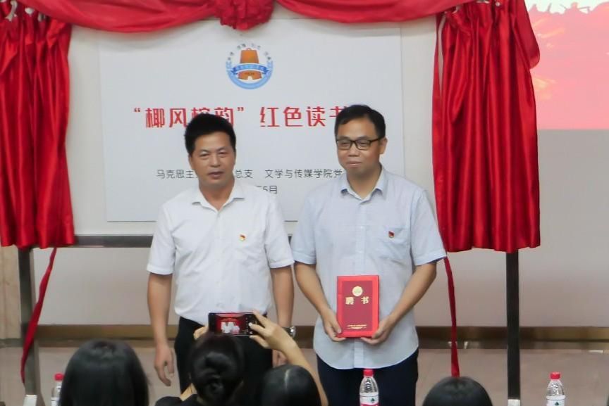 5月19日,校党委常委、宣传部部长刘坤章、马克思主义学院党总支书记邓倩文、文学与传媒学院党委书记陈凯珍等共同为“椰风榕韵”红色读书会揭幕,共同探索“红色书香校园”建设新形式,通过师生共读、同学共进和文化传播,深入学习领会习近平新时代中国特色社会主义思想,深化红色文化教育与爱国主义教育,传承红色基因,赓续红色血脉。
