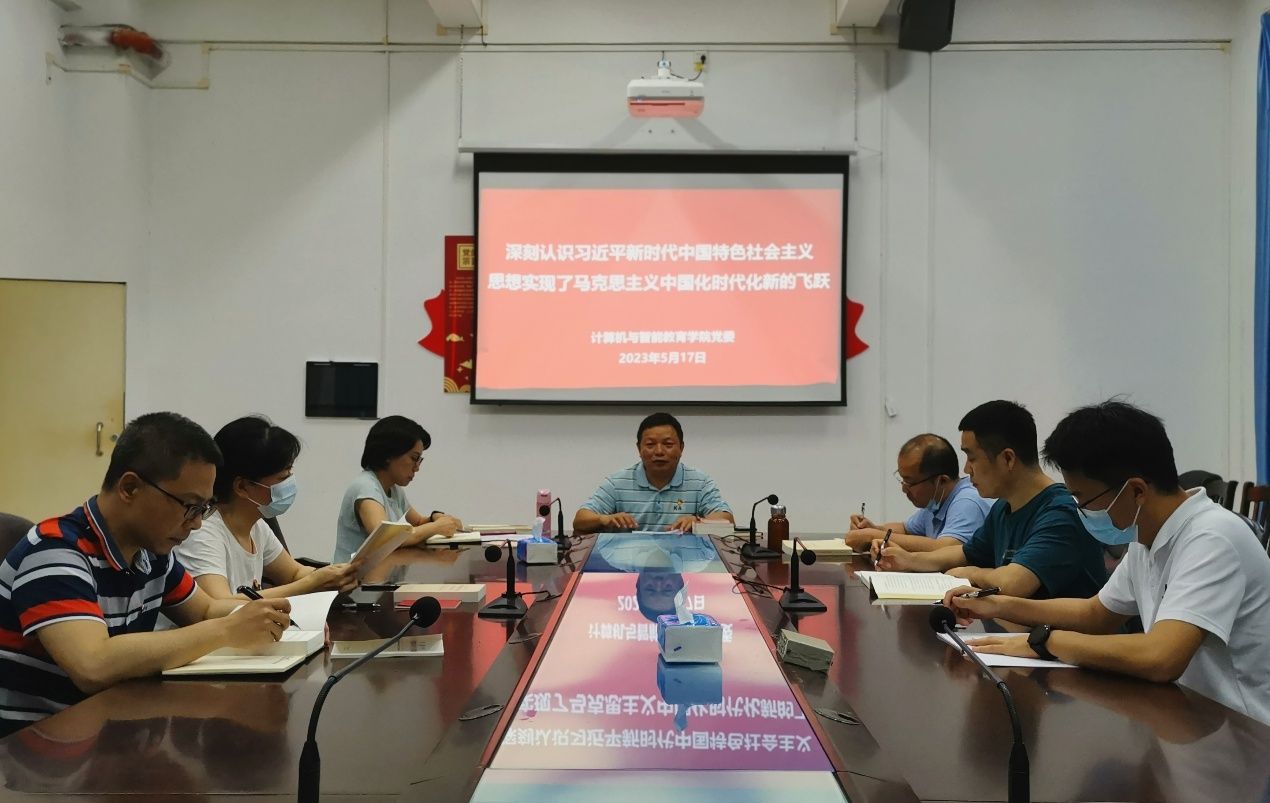 5月17日,计算机与智能教育学院党委理论学习中心组召开学习贯彻习近平新时代中国特色社会主义思想主题教育第二次专题学习会,围绕“深刻认识习近平新时代中国特色社会主义思想实现了马克思主义中国化时代化新的飞跃”开展专题学习研讨。学院党委书记李海文主持会议,党委副书记陈明娟进行领学,副院长洪伟铭作重点发言。