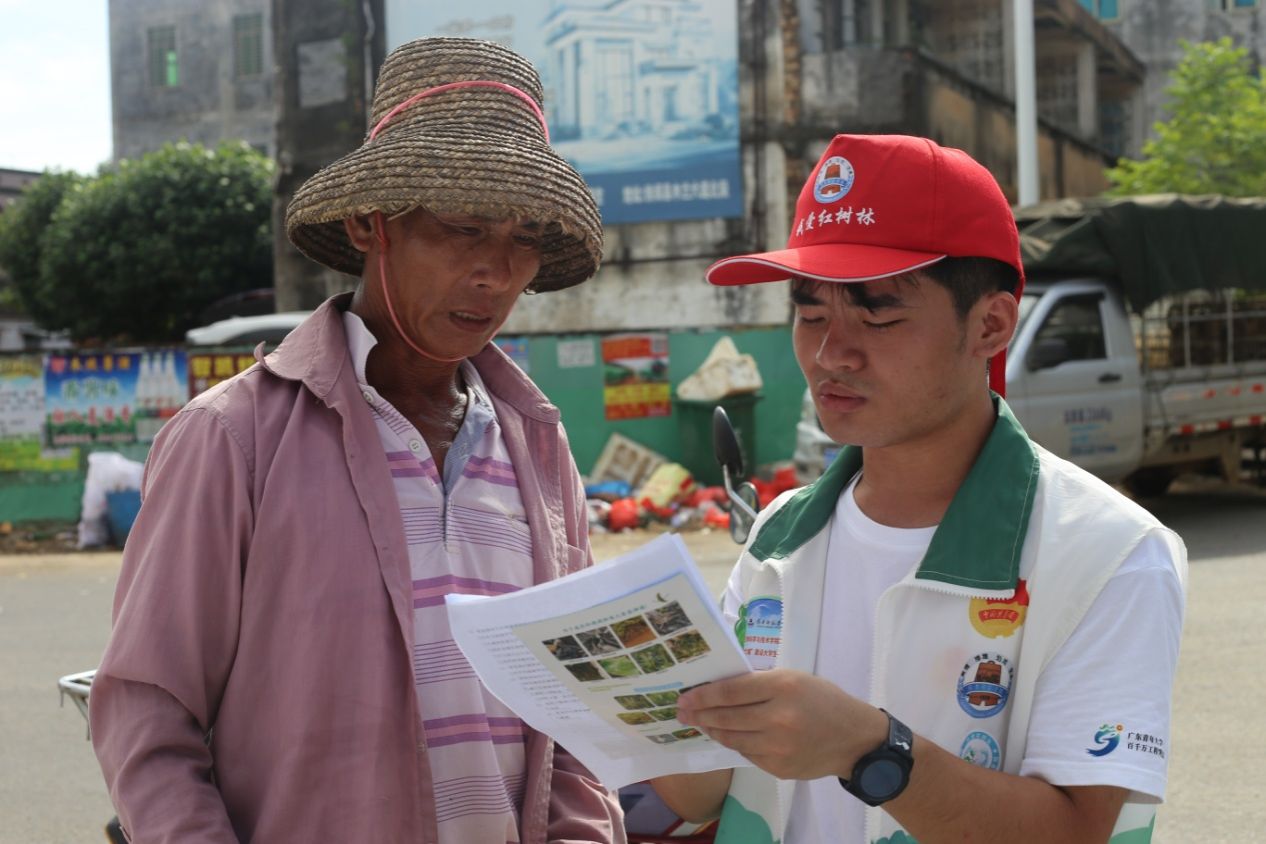 在科普宣传站,志愿者们熟练的用普通话、粤语和雷州话,对经过的群众宣传红树林科普知识,和法律保护知识,还设计了有意思的问答小游戏、抽奖等环节,现场民众都很关注,纷纷为志愿者点赞。