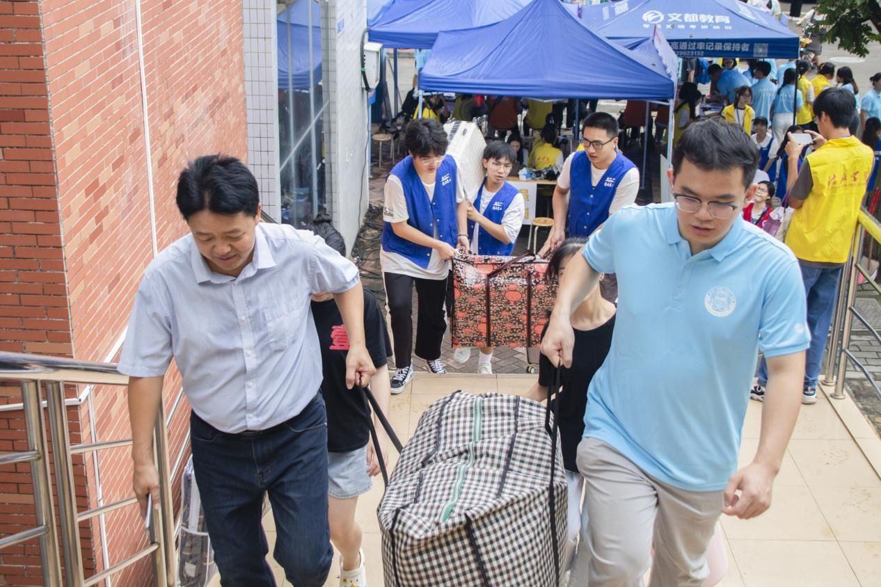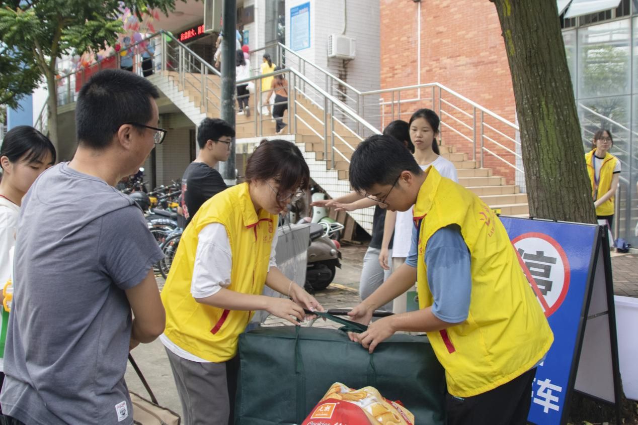 迎新大本营,我们的迎新工作人员早早布置迎新现场,熟悉迎新工作流程,他们满怀热情,整装待发,翘首以盼迎新生。从校门口到法政学院的大本营,迎新工作人员以最饱满的热情和最真诚的态度接待每一位到来的新生,他们接过新生们手中的行李,引导新生有序地核对信息、领取校园卡和宿舍钥匙,完成报道手续,帮助新生搬运行李顺利入住宿舍。现场气氛热烈,秩序井然,有条不紊。一张张热情的笑脸,一句句亲切的问候,一项项贴心的服务,我们的迎新工作者们都在自己的工作岗位上,用最热情最质朴的方式欢迎每一个新成员的到来,让萌新们心生暖意!接过你的行囊我们就是一家人!