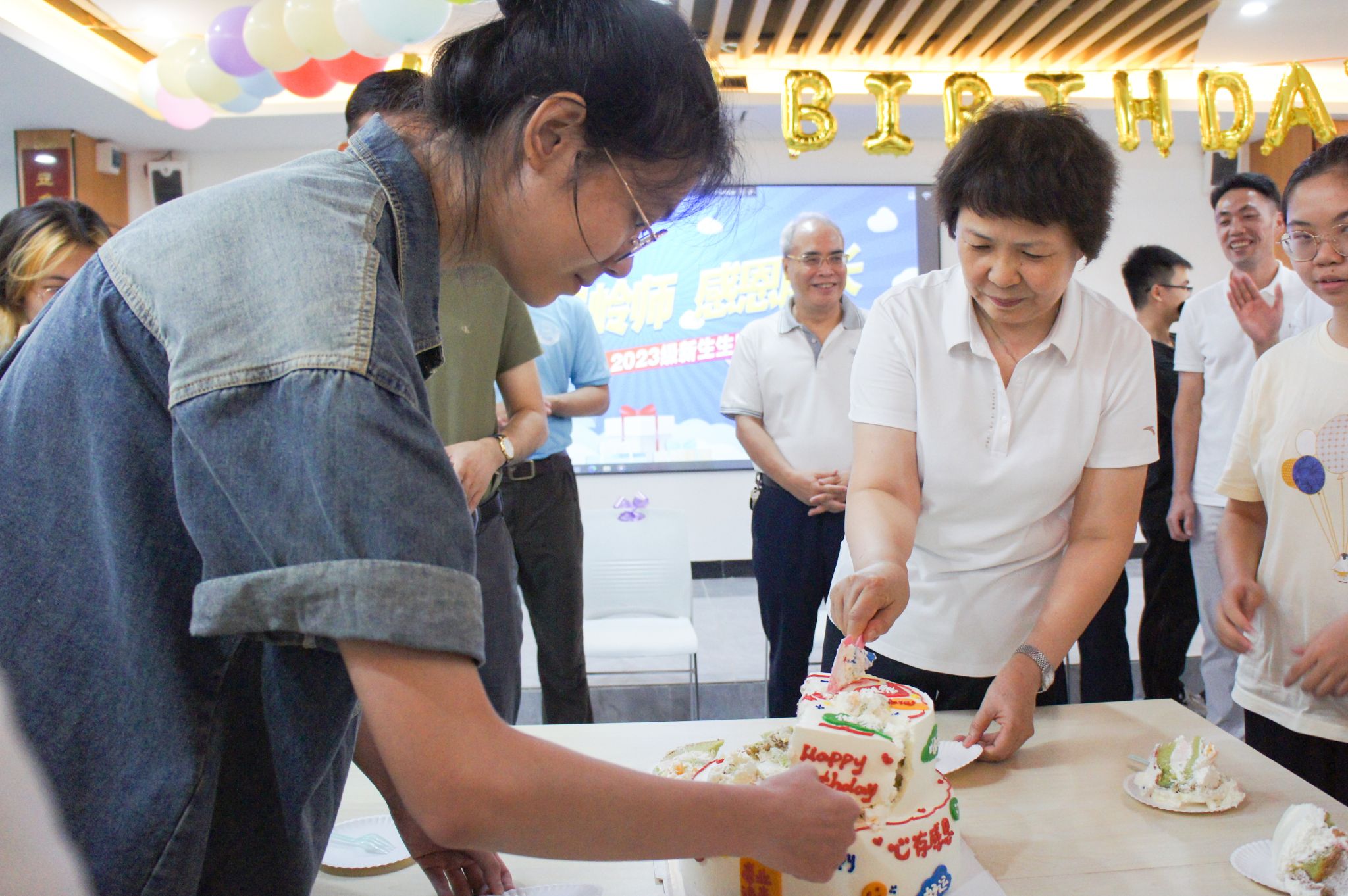 “祝你生日快乐……”9月9日,在岭南师范学院“一站式”学生服务中心内,一场特殊的生日会正在进行。来自不同省份的11名2023级新生刚到校就欢聚一堂,在家长、校友和校领导的生日歌中,新生们一一接过学校党委书记兰艳泽切分的生日蛋糕,直呼:“这个生日太惊喜了!”“岭南师范学院大家庭,我爱了!”