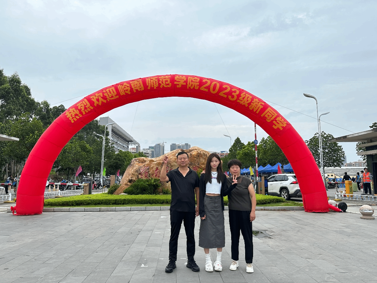 2023级社会体育指导与管理专业的朱婷在岭南师范学院南大门留下了和父母在大学里的第一张合照。父亲脸上挂着恬静的浅笑,眼里满是对女儿的爱与期待。她对帮忙拍照的学生表示了真诚感谢,也告诉我们她心中激动的心情。大学作为新起点,给她带来了美好的憧憬与向往,但未来与家人的短暂分别也让她无比挂念着家人。爱与成长成为她进入大学的第一个人生课题。