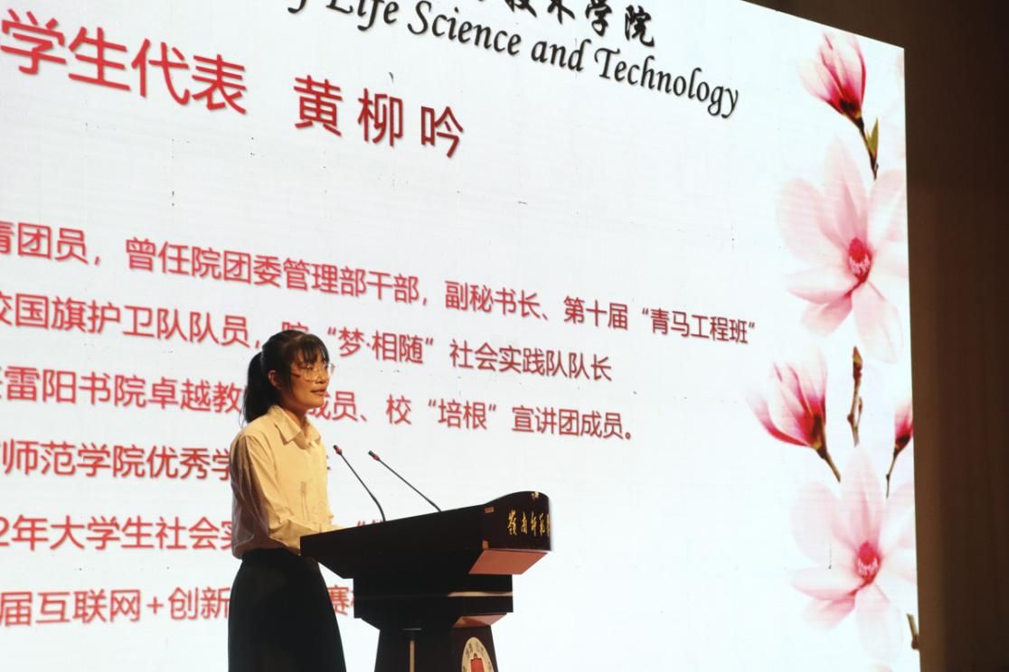 生命科学与技术学院优秀学生代表黄柳吟讲话