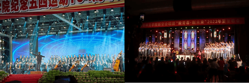 学院新空合唱团深情演绎的《海阔天空》《再见》等曲目被人民日报、新华社、央视新闻、中青团中央等各大权威媒体纷纷转发和报道;学院联合新华社视频号共同举办的“致青春创未来”夏至歌会在新华社官方视频号面向全国直播,近40万人次全程观看直播。