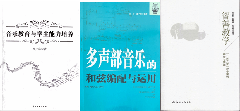 出版教材:近三年,我院教师出版教材3部,吴少华副教授编著的《音乐教育与学生能力培养》,2021年1月中国戏剧出版社出版;张力副教授、谭子丰讲师编著的《多声部音乐的和弦编配与运用》,2022年12月湖南文艺出版社出版;彭桂明副教授编著的《智善教学——“三环六部”教学案例研究与实践 》,2023年1月华中师范大学出版社出版。