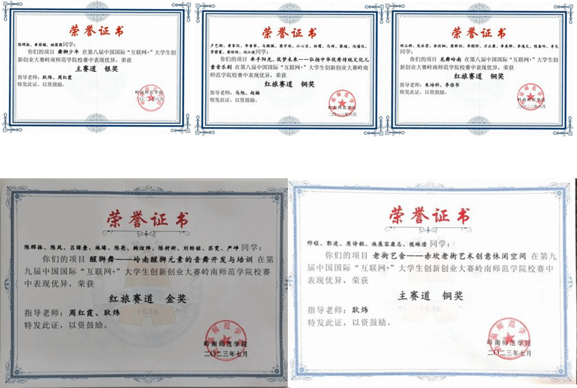 表彰获奖:2019年以来,我院大学生创新创业计划项目共立项4项,其中省级1项,校级3项,在学校“互联网+”大学生创新创业大赛获奖5项。