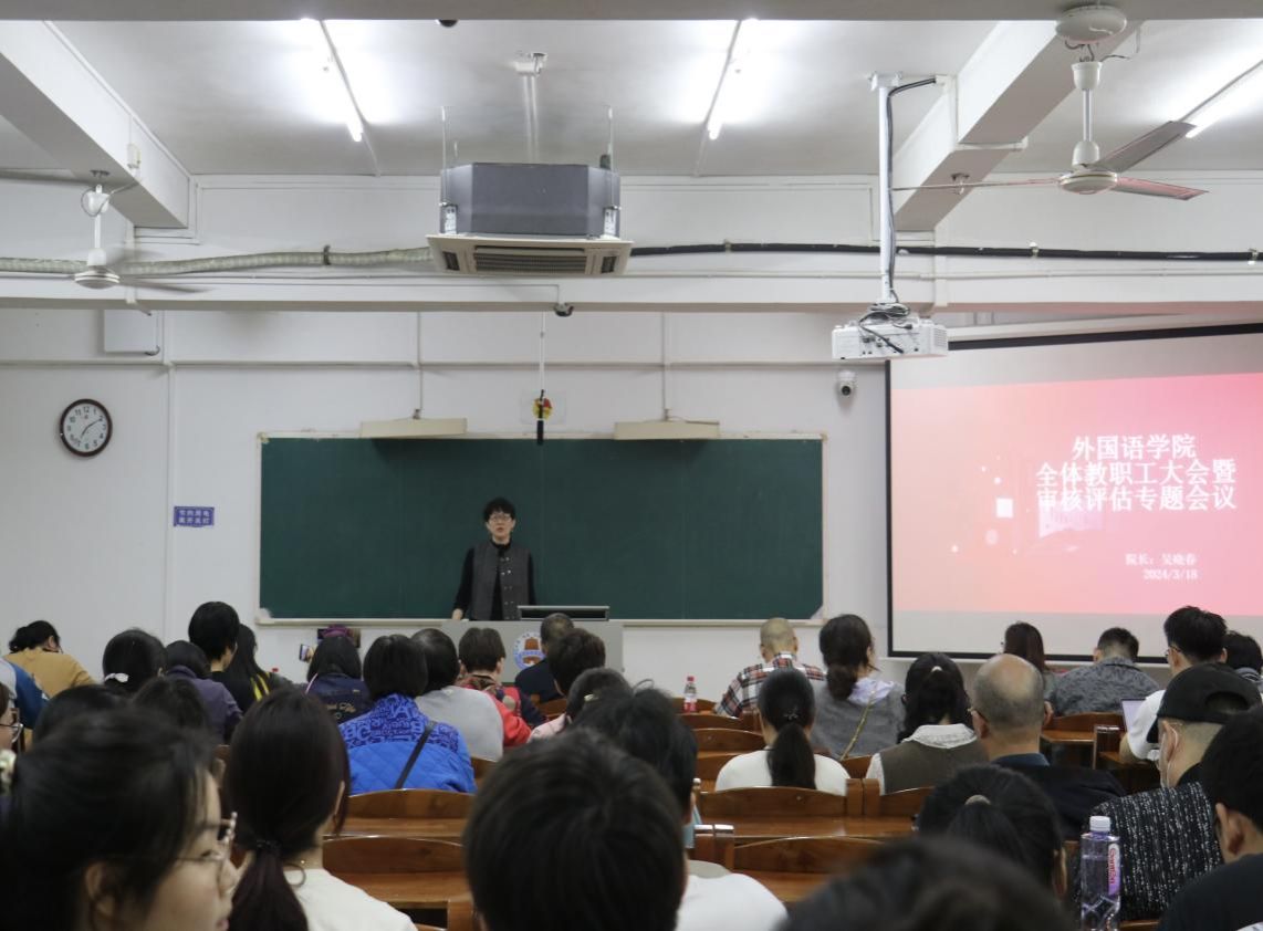 3月18日晚,外国语学院在教三405召开外国语学院全体教职工大会暨本科教育教学审核评估专题会议。外国语学院全体教职工、班长和团支书出席本次会议。