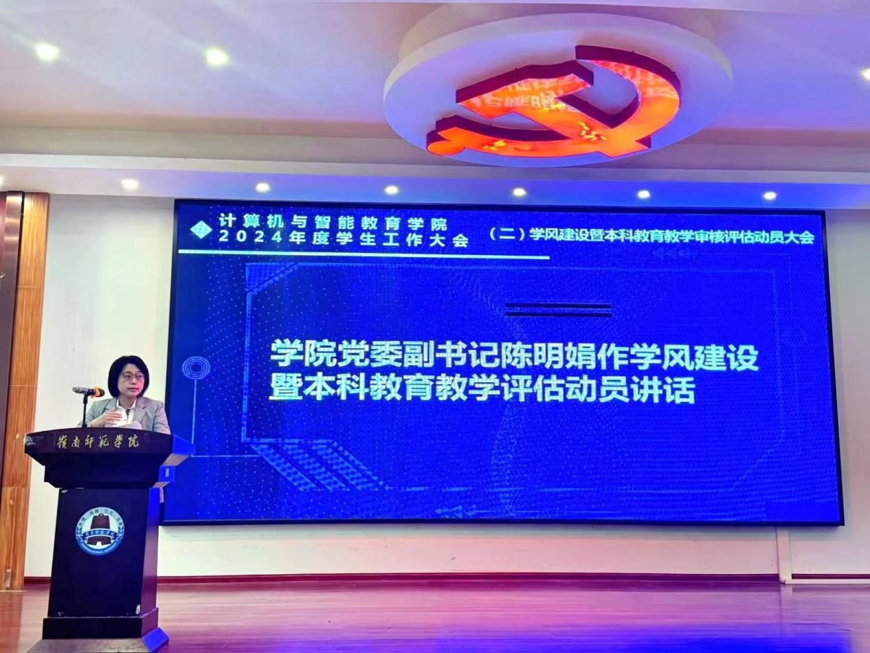 3月17日下午,计算机与智能教育学院在教三211召开学风建设暨本科教育教学审核评估动员大会。学院党委副书记陈明娟、全体辅导员,学院学生机构负责人及各部门负责人,全体班级班长、团支书、副班长、学习委员参加本次会议。