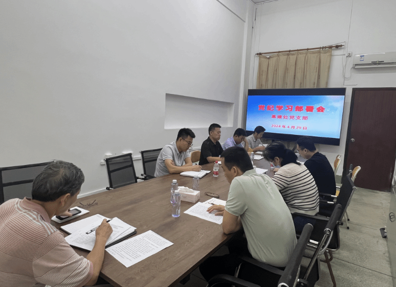 4月29日上午,基建处党支部召开2024年全面从严治党暨党纪学习教育部署工作会,全处教职工参加会议。