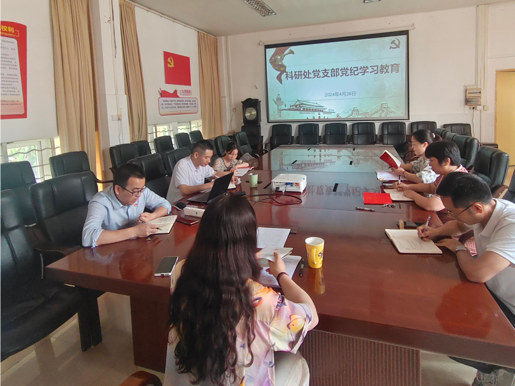 4月26日,为深入学习贯彻习近平总书记关于党纪学习教育重要讲话和重要指示批示精神,落实学校党委关于党纪学习教育的有关部署,科研处党支部组织开展党纪学习教育。会议由科研处党支部书记刘群慧主持,科研处党支部全体党员参加。