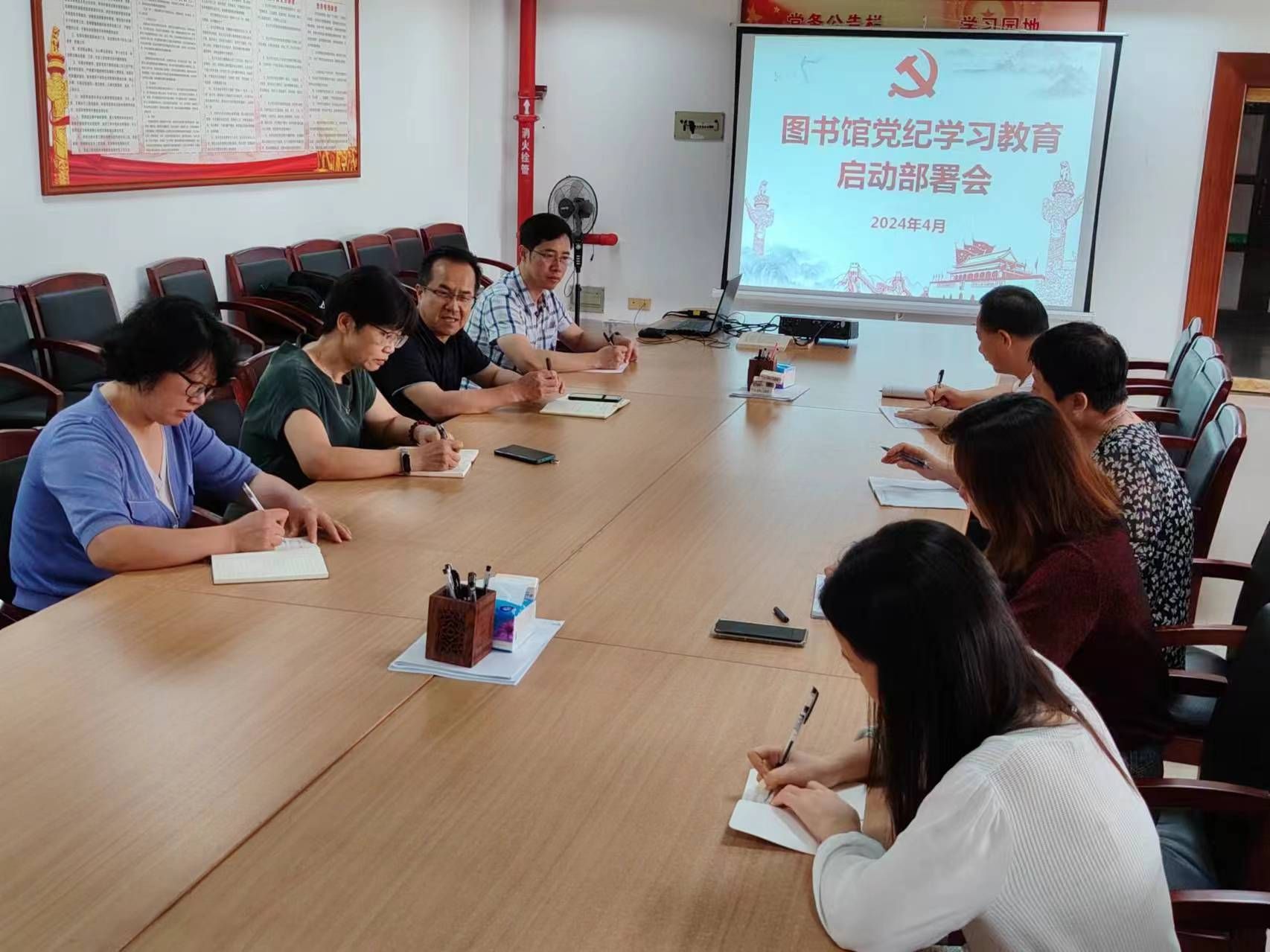 4月19日下午,图书馆召开党纪学习教育动员部署会,党总支书记李健彬主持会议并发表讲话,领导班子成员、各党支部书记、组织员参加了会议。