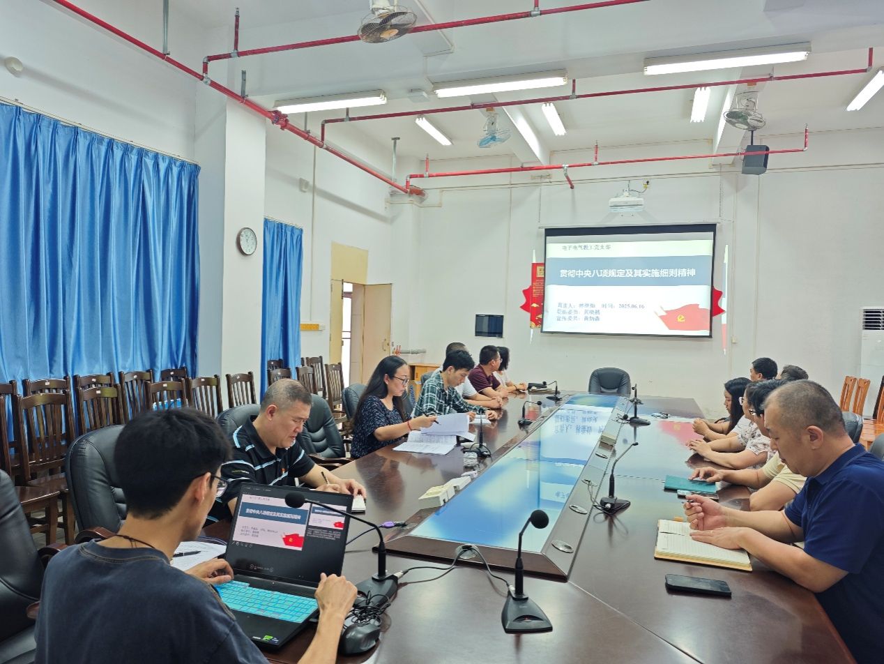 为持续深化全面从严治党,进一步贯彻落实中央八项规定及其实施细则精神,电子与电气工程学院电子电气教工党支部于6月16日在综合实验楼B栋101会议室召开专题党员大会,围绕党的作风建设开展集中学习。会议特邀电子院党委柯春明书记到会指导,支部党员参会。会议由党支部书记林继灿主持。