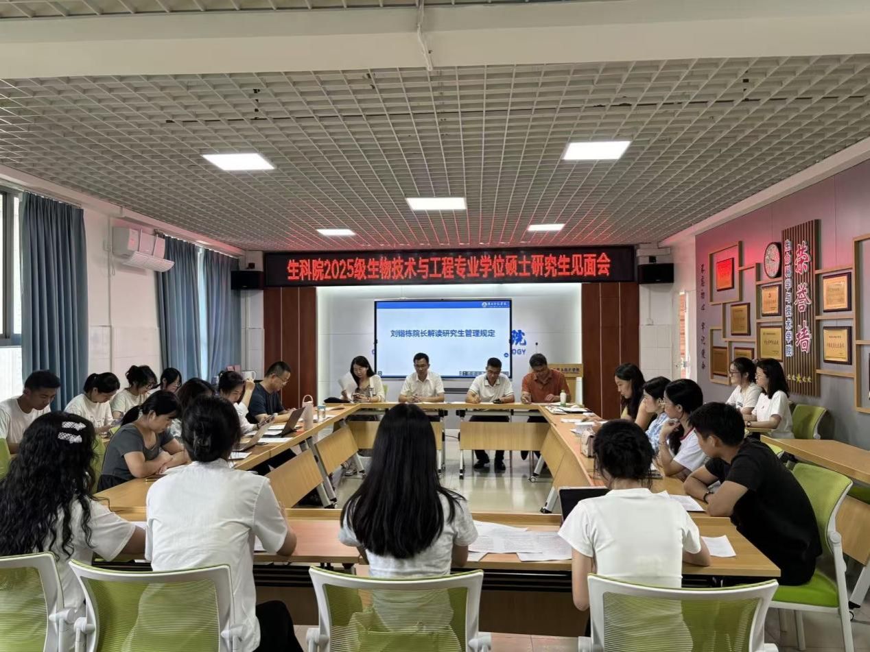 为帮助首批生物技术与工程专业学位硕士研究生更好更快进入学术氛围、明确科研方向。9月15日上午,生命科学与技术学院于第四教学楼E507,举行研究生新生见面会。生命科学与技术学院党委书记李发武、院长刘锴栋、副院长王锂韫、副院长孙余丹和硕士研究生导师孙玉林副教授、周艳副教授、冯瑜菲副教授、孙玉林副教授、徐俊苹博士、吴天利博士共同出席,与全体研究生新生同聚一堂,谈规划,话未来。